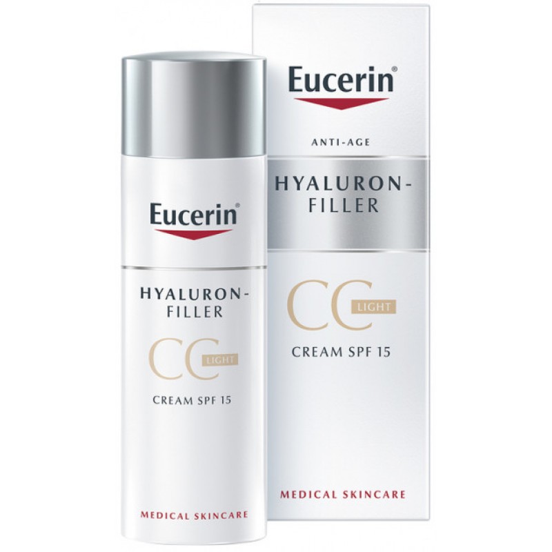 Крем СС Eucerin Hyaluron-Filler проти зморшок, миттєва корекція кольору шкіри, світлий тон, 50 мл