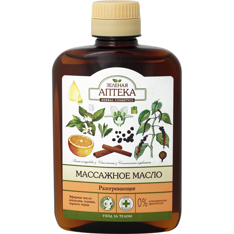 Масло обеспечивает мягкое разогревающее действие. Хорошо впитывается, обеспечивает рукам легкое скольжение. Не оставляет на коже ощущение липкости. Не содержит консервантов и красителей.