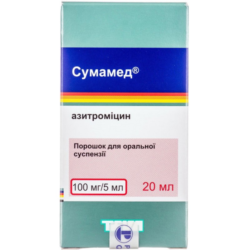 Сумамед порошок д/ор. сусп. 100 мг/5 мл по 20 мл (400 мг) у флак.