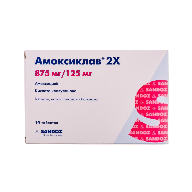 Амоксиклав 2x таблетки, в/плів. обол. по 875 мг/125 мг №14 (7х2)