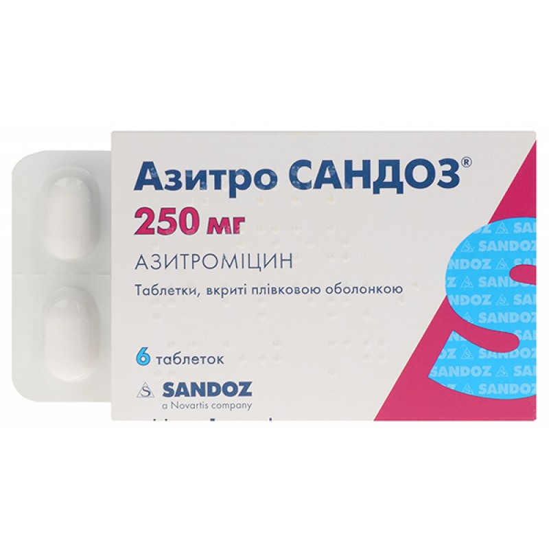 Азитро Сандоз таблетки, в/плів. обол. по 250 мг №6