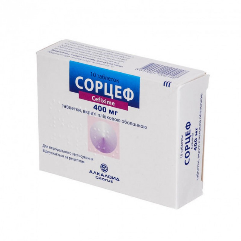 Сорцеф таблетки, в/плів. обол. по 400 мг №10 (5х2)