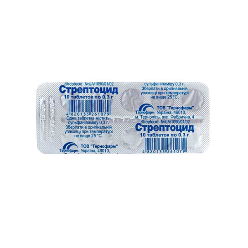 Стрептоцид таблетки по 0.3 г №10