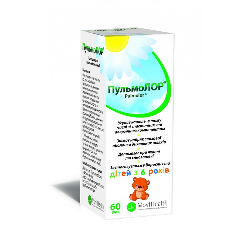 Пульмолор оказывает выраженное отхаркивающее действие, смягчает и успокаивает кашель, облегчает дыхание, нормализует секрецию бронхиальной слизи, улучшает отхождение мокроты, уменьшает воспаление дыхательных путей. Оказывает противоаллергическое действие, устраняет спазм гладких мышц бронхов и отек тканей, в том числе слизистых оболочек носа, горла, гайморовых пазух и дыхательных путей, снижает проницаемость капилляров, устраняет заложенность носа, ринит, слезотечение, чихание, зуд неба и носа, гиперемию глаз.