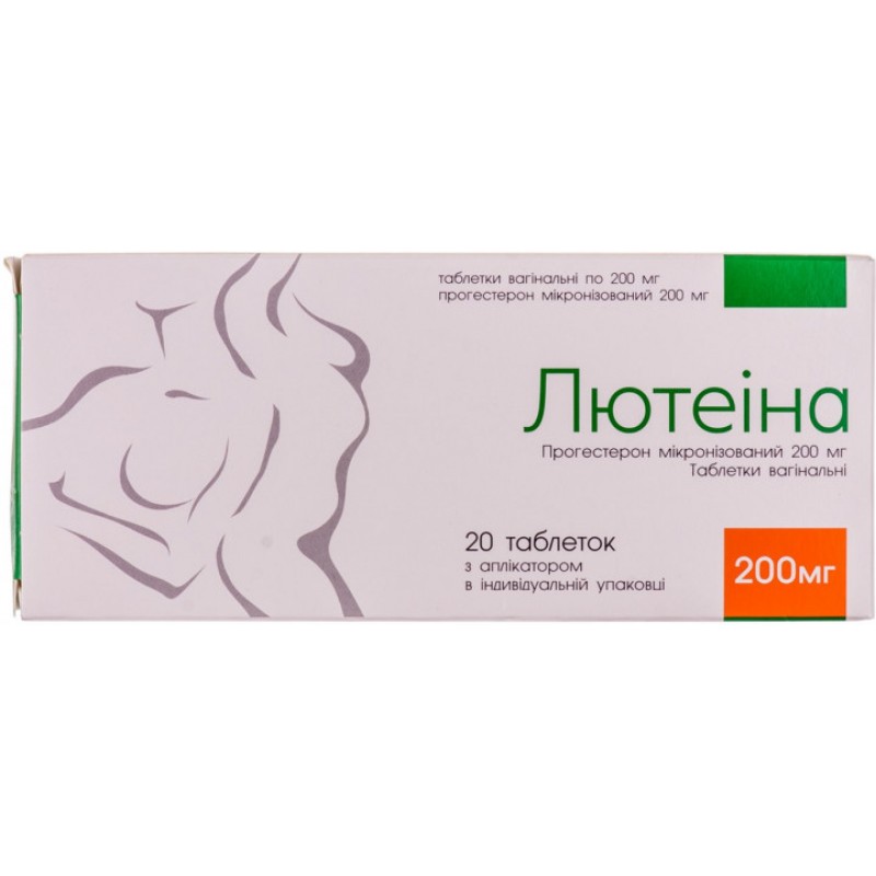 Лютеіна таблетки вагін. по 200 мг №20 (10х2) у бліс. з аплік.