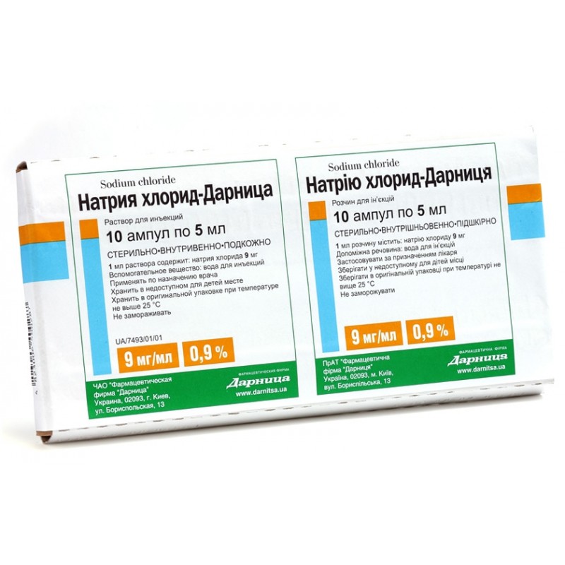 Натрію хлорид-Дарниця розчин д/ін. 9 мг/мл по 5 мл №10 (5х2) в амп.