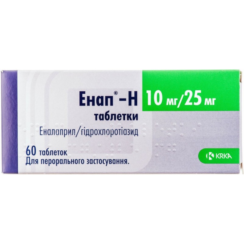 Енап-H таблетки по 10 мг/25 мг №60 (10х6)
