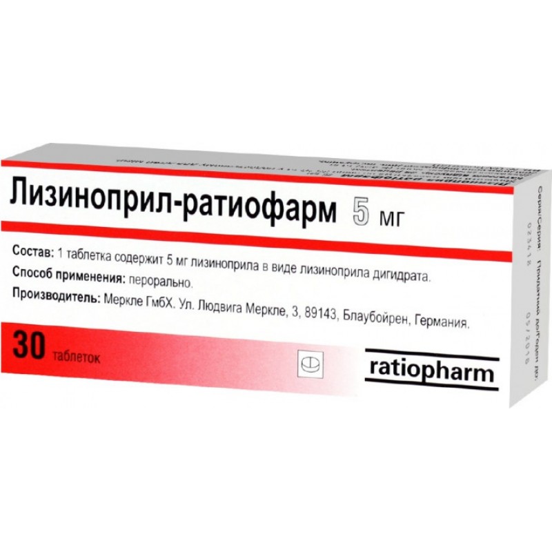 Лізиноприл-Тева таблетки по 5 мг №30 (10х3)