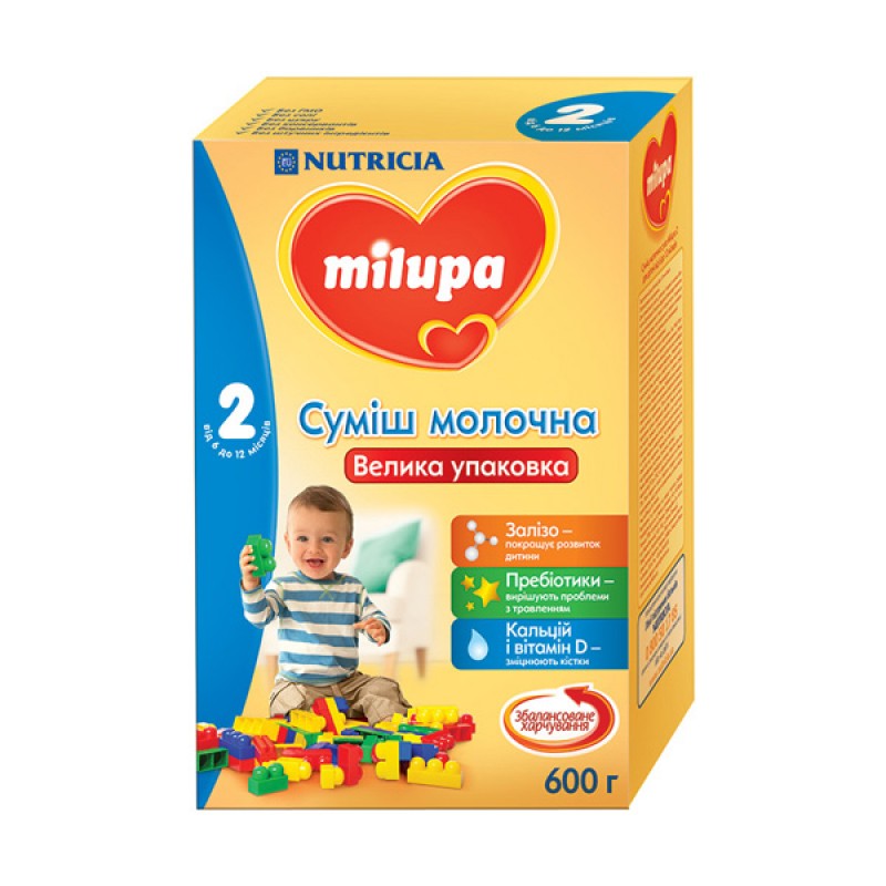 Смесь «Milupa 2» рекомендована для вскармливания детей от 6 до 12 месяцев. Она дает энергию малышу и необходимое количество полезных веществ. Содержит железо и витамин С, которые улучшают развитие ребенка. Необходимое количество пребиотиков – для решения проблем с пищеварением. Кальций и витамин D – для укрепления костей и зубов. Не содержит: ГМО, соли, сахара, консервантов, красителей и искусственных ингредиентов.