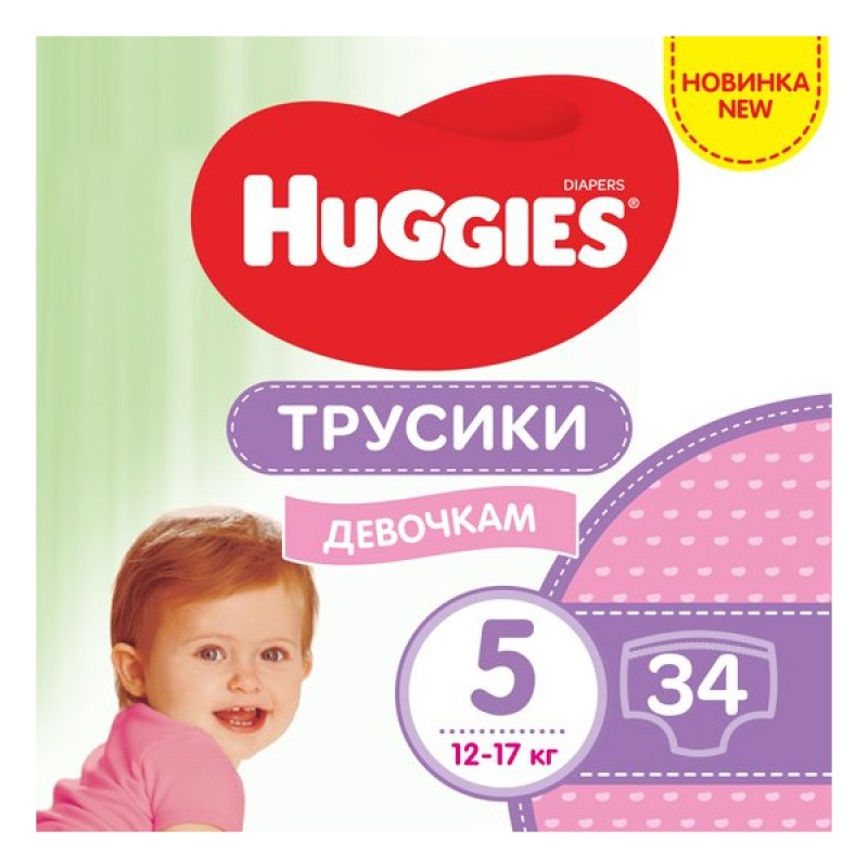 Трусики-підгузки дитячі Huggies Pants для дівчаток, розмір 5, 12-17 кг, 34 штук