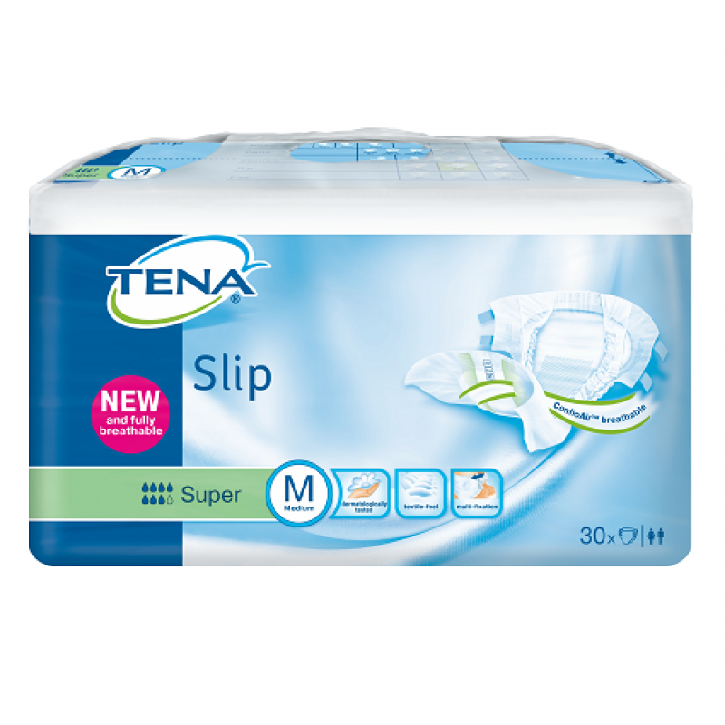 TENA подгузники Slip Super Medium (73-122 см) N30 удобны и надежны в использовании, как для подвижных людей, так и для лежачих больных. Индикатор наполнения облегчает уход, помогая определить необходимость замены подгузника. Дышащая поверхность позволяет воздуху циркулировать, предотвращая перегревания и снижая риск появления раздражений и пролежней. Двойной впитывающий слой с технологией FeelDry обеспечивает быстрое впитывание и превосходное удержание жидкости. Уникальная зона для крепления застежек позволяет фиксировать их столько раз, сколько необходимо, не повреждая поверхность подгузника.